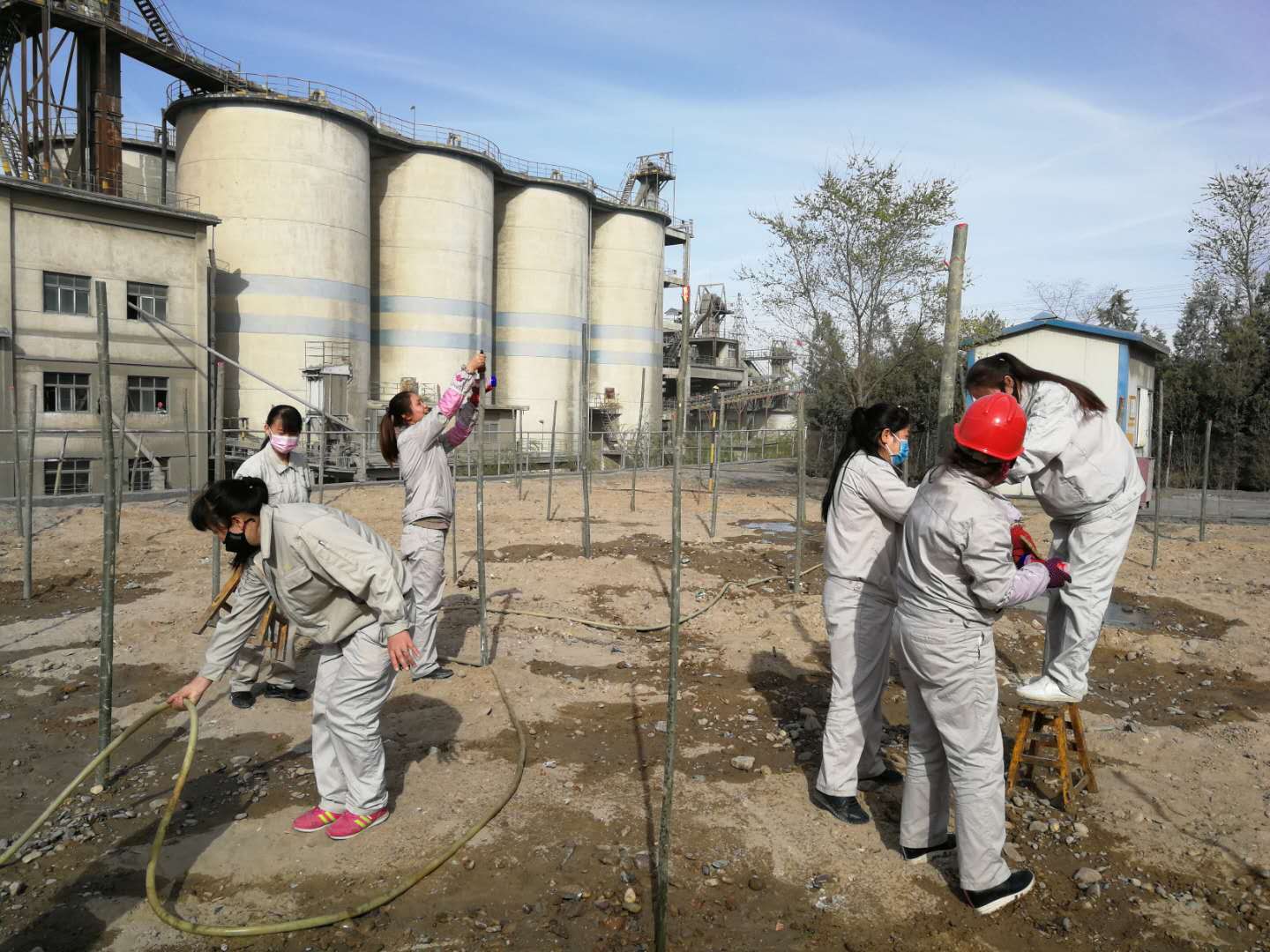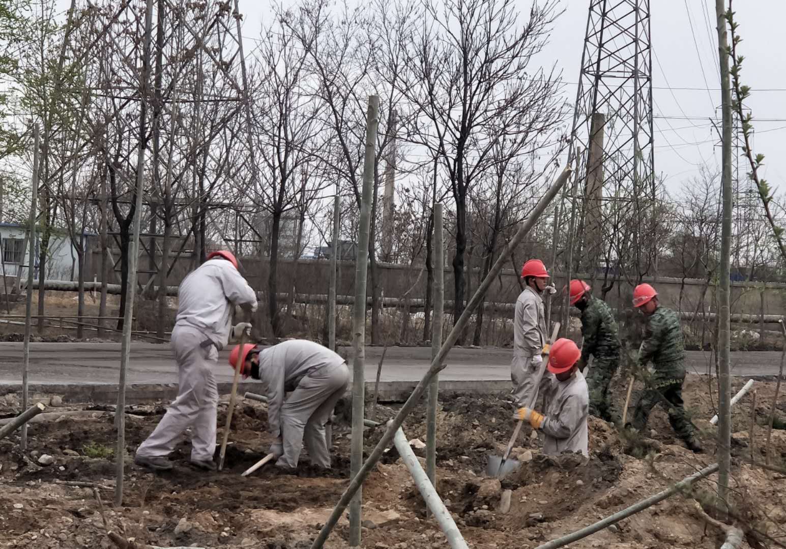 410日和11日,資源再生公司組織所有日勤人員栽種樹木。先后在東大路西側,4#電石爐西側,職工回民餐廳門口及成品裝置東邊等等地方栽種樹木上千棵。大家齊心協力,扶樹的、填土的,每個人都在努力的加快進度,頭上冒出了汗珠,渾身酸痛,可大家仍然堅持著,短短兩天時間就將所有計劃的樹木全部栽種完畢。
