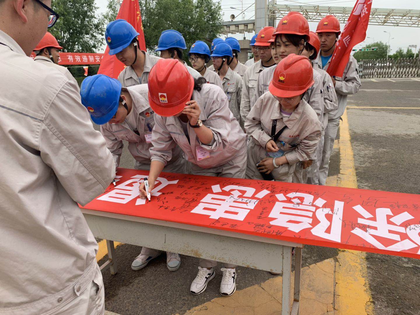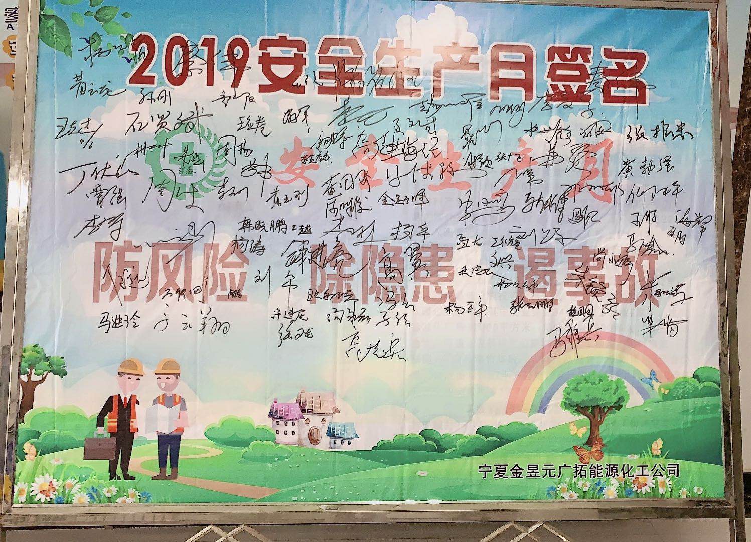 最后,開展了安全簽名活動,全體干部職工在“防風險、除隱患、遏事故”的橫幅上鄭重地簽下了自己的名字,表達了對開展好安全月活動的信心和實現安全生產目標的決心。