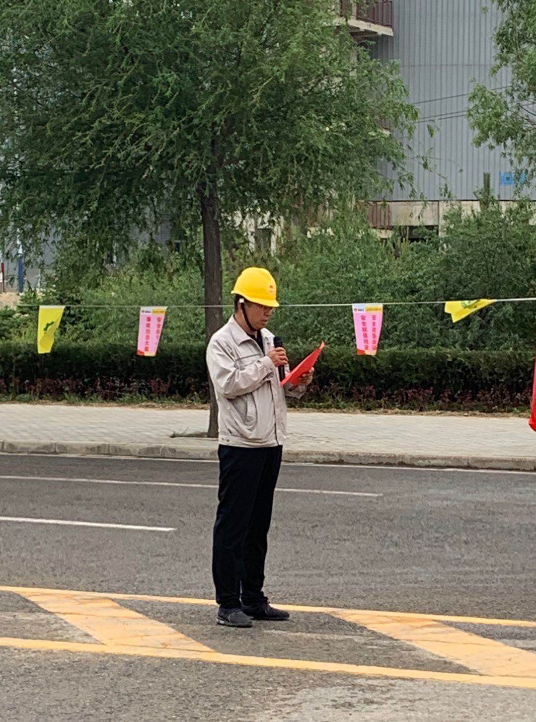 安全生產月活動儀式啟動首先進行了升國旗儀式,伴隨著莊嚴的國歌聲,五星紅旗冉冉升起。片區總經理喬冠榮作安全生產月動員講話。