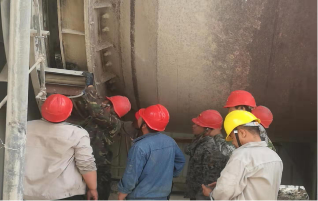 在更換液位計現(xiàn)場,“看來得想其他辦法了”。電儀裝置裝置長王波帶領(lǐng)電儀裝置班組人員經(jīng)過商討,決定利用杠桿原理進行拆卸,即一人站在扶梯上固定螺栓,一人在一米遠的平臺上撬,終于擰動了生銹的螺栓,將液位計成功拆卸。而此時,他們又接到了一項新的檢修任務(wù):檢修并緊固窯尾電動機。