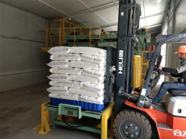自動包裝項目的改造主要針對樹脂自接料到碼垛輸送的全自動生產線。改造前,包裝、碼垛過程全是由人工手動進行的,這意味著,人員勞動強度大,樹脂包裝凈重控制不穩、波動較大,而且在包裝過程中,有粉塵較多、雜質粒子超標、樹脂浪費嚴重、生產成本較高等缺陷。自動包裝項目建成后,有效地減輕了工作人員的勞動強度,大大提高了PVC樹脂包裝質量和效率,有效地改善了包裝工作環境,降低了粉塵,降低了人工成本。