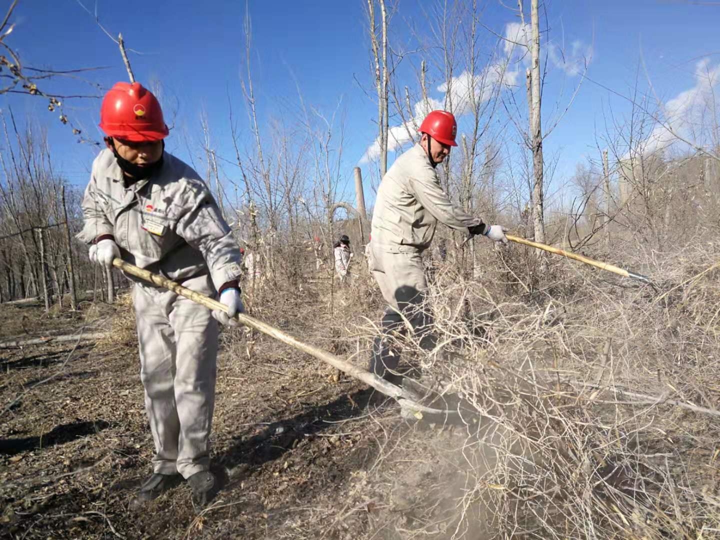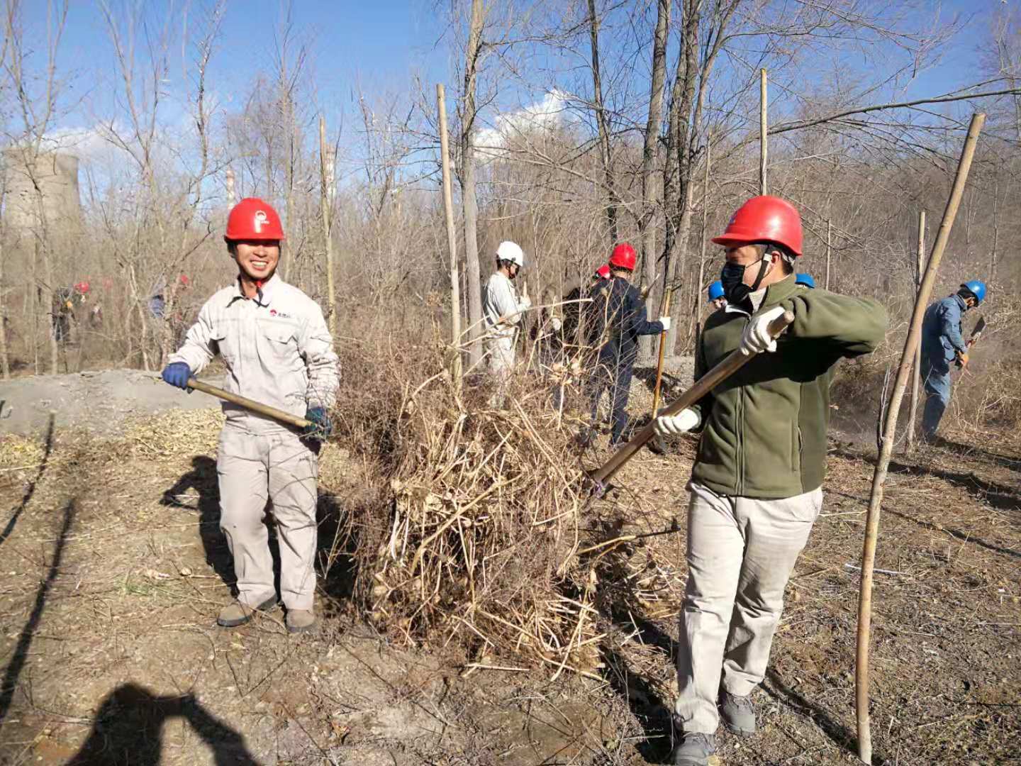 嚴寒的冬天已經來臨,后山樹林落葉堆積較厚,干燥的枯草在風中搖曳,存在較大火災風險隱患。結合集團公司正在開展的第二批“不忘初心、牢記使命”主題教育實踐活動,青銅峽片區集中組織全體黨員干部和日勤職工開展后山樹林落葉、枯草清理工作。