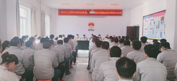 春節前期,廣拓能源化工公司組織召開2019年度工作總結、先進表彰暨目標責任書簽訂會議。本次會議由公司副總經理盧志銀主持,化工公司總經理、副總經理、安全總監、副總工程師出席,25名先進集體、個人及70余名職工代表參加。