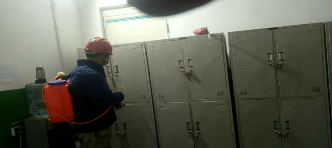 在宿舍進行衛生消毒。