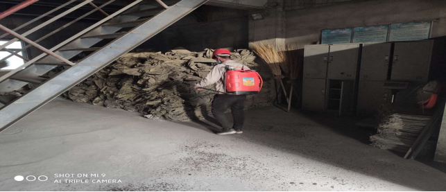 對廠區衛生間消毒。