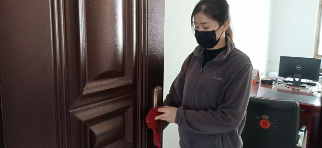 擦拭操作臺、門把手,工作的有條不紊。