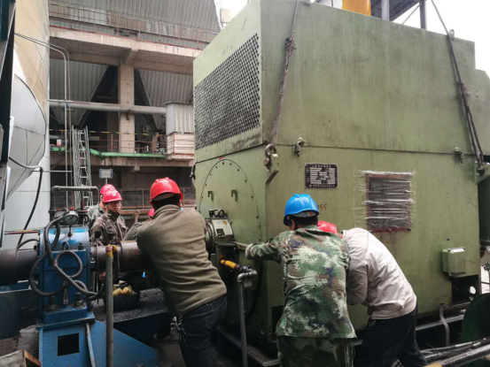 安裝窯頭排風(fēng)機(jī)、窯尾高溫風(fēng)機(jī),電儀裝置裝置長(zhǎng)王波更是以身作則,風(fēng)雨中依然親臨現(xiàn)場(chǎng),親自帶兵指揮,合理地調(diào)動(dòng)安排工作。