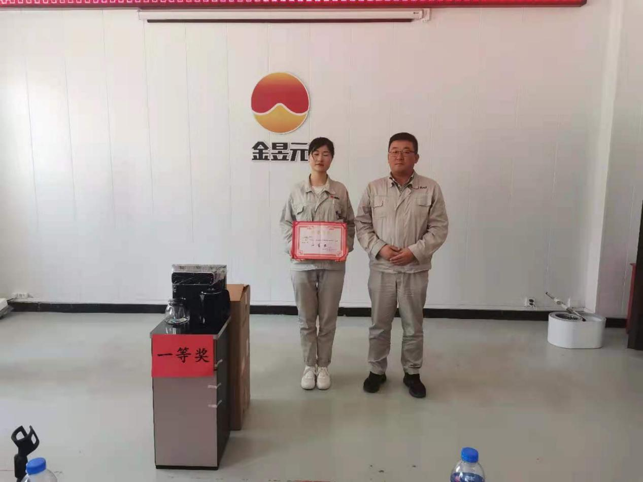 經(jīng)過激烈角逐,最終本次比賽的一等獎(jiǎng)由電解裝置的海娟獲得,獎(jiǎng)品為茶吧機(jī)一臺(tái),化工公司總經(jīng)理賈存富為她頒發(fā)了獎(jiǎng)品和榮譽(yù)證書。