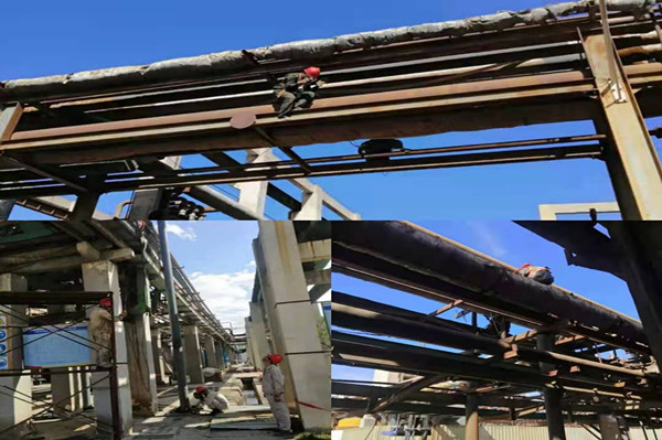 近期面對持續高溫天氣,加之裝置內部工作任務也比較繁重,現場除了管架除銹刷漆任務,還有框架支撐加固任務,設備檢修任務等一系列工作都需要按時按計劃完成。但是如此高溫天氣,加之都還是登高動火作業,而且難度較大。可工作還要繼續,為此,裝置領導運籌帷幄,安排有序,使得這些工作都在有序的開展當中。裝置維修工以及日勤人員身先士卒,系好安全帶,拿好除銹刷漆工具,戴好防護用品登上四五米高的管架上方進行作業。當磨光機轉動后飛濺起的鐵銹與灰塵,全部落到作業人員的身上和臉上;豆大的汗珠不停地從頭上掉落下來,砸到地面,如同一粒粒雨點,描繪著一幅幅熱火朝天的勞動景象。在高處刷漆的同事們,腳下的槽鋼曬得滾燙;既要保證刷漆的質量,還要保證油漆不掉落,最重要的是要保證自身安全。當他們從管架下來的那一刻,全身如同水洗一樣衣服全都濕透了,但他們沒有唉聲抱怨;每一個人抬頭看著除銹后刷完漆嶄新如初的管架,他們臉上都漏出開心的笑容;現場焊接立柱的人員,本來氣溫就高,還要受焊槍的炙烤,那是熱上加熱呀;但他們依然堅持焊接完所有的立柱,他們這種愛崗敬業的精神讓我肅然起敬。