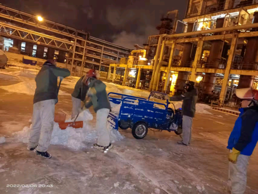正月初五,固原迎來了2022年的第一場雪。堅守夜班的化工橫一班接班后,調度就對橫一班員工強調:“今天白天下了一天雪,晚上氣溫肯定會下降,現場巡檢時一定要注意防滑,上下樓梯抓好扶手,穩走慢行。防凍防凝是巡檢重點內容,大家要加大巡檢力度和頻次,尤其是要保證保溫伴管、排污閥、疏水閥等關鍵部位正常,操作人員要認真監控,及時觀察控制參數的變化情況,精準調控,確保安全生產運行”。一場大雪后,固原市銀裝素裹,人們在盡情地享受瑞雪樂趣。但在廠區內“沙沙”聲、“咣咣”聲不絕于耳,當班的班組長及員工“以雪為令”,迅速行動,不畏嚴寒,揮舞著鐵鍬、掃帚、簸箕等一切能派上用處的除雪工具,你鏟我掃相互配合,全面徹底清理室外道路、巡檢通道、裝置現場等區域的積雪和凍冰,經過數小時的奮戰,現場干凈整潔,切實保證了裝置安穩生產。