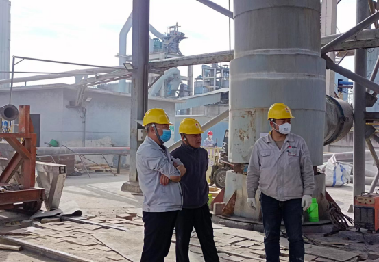 “加油、加油......”9月30日上午7時00分,一夜沒有眨眼的總經理吳紅衛同志,身先士卒,再次深入預熱器檢修現場,與公司領導班子、生產科室負責人、專業主管、裝置管理人員及參檢人員一同進行裝置開工前的準備工作——工藝管道疏通。