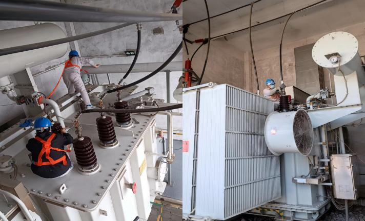 一切準備工作就緒,首先整流現場對變壓器進行放電、驗電掛接地線,螺絲緊固除塵及硅膠更換,俗話說的好,誰說女子不如男,這次顯然不同的是,由女生進行此次變壓器的檢修工作,雖然辛苦,但這是鍛煉我們的機會,是學習增長知識的機會,因此再苦再累也必須堅持。