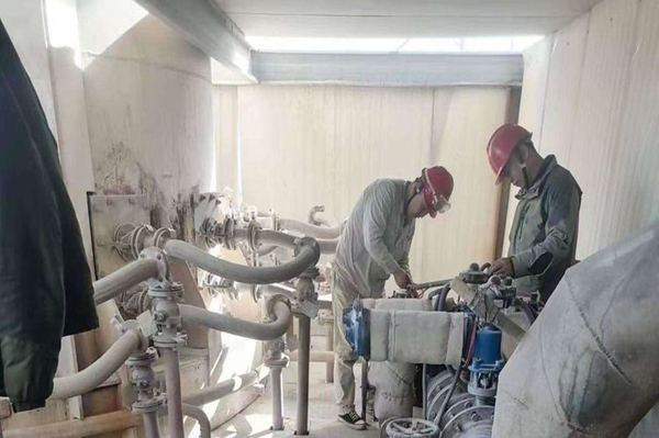 動力裝置檢修人員可謂是上得橋架,下得消防井,游走于水、陸、空之間。全力以赴更換2#白灰窯環管快切閥門,一絲不茍移換凈化配電室配電柜,已經更換及清洗部分填料工作和修復的冷卻塔集水盤就可以展現他們水、陸、空作業的能力。還有狹小空間里作業的人員,切割、焊接毫無妨礙。原料裝置也不遜色,更換布袋這份工作都已經如囊中取物,不管是除塵器還是窯前倉,都已經被他們輕輕松松完成。力氣是他們特有的魅力,細心是他們工作的態度,用肥皂水查找并消除噴槍層漏點,用抹布擦凈每臺設備。