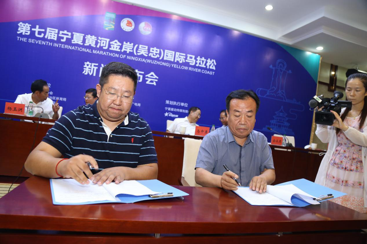 (新聞發布會現場,“寧馬”冠名企業寧夏金昱元化工集團有限公司與運營方星動傳媒進行了簽約儀式)
