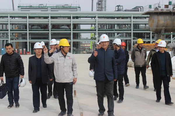 副主席馬漢成一行先后到廣拓化工公司重大危險源氯乙烯單體球罐、氯乙烯氣柜、乙炔站料倉進行實地查看。調研中,總經理喬冠榮就片區當前生產運行、安全環保、項目建設情況及生產經營中存在的問題進行了詳細匯報。