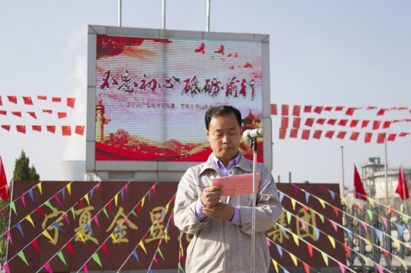 升旗儀式伊始,集團(tuán)公司黨委副書記王立軍,集團(tuán)公司副總裁、青銅峽片區(qū)總經(jīng)理尚興向升旗儀式致辭。