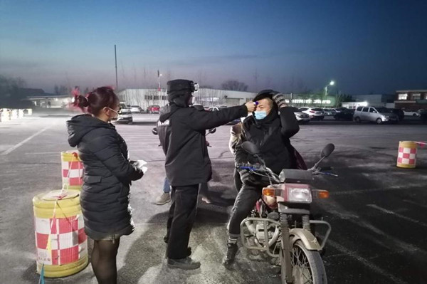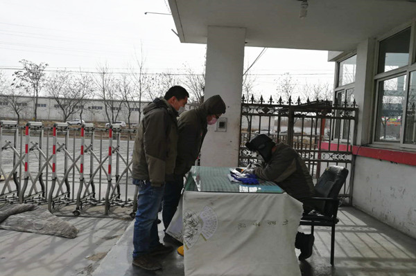 2月13日,氣溫驟降,在片區北大門新增檢測點,由于值班室是移動房,沒有暖氣,劉聰俊和侯進在晚上頂著寒冷值班。盡管天氣嚴寒,但他們依然堅守崗位,一絲不茍地對通行人員進行體溫測量和信息登記,嚴把疫情防控關。和他們一樣,所有檢測點的保衛科人員都默默無聞地與疫情防控和嚴寒做著斗爭。
