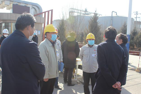 2 月 19 日下午,自治區工信廳副廳長朱洪軍一行,在固原市開發區管委會副書記張恭昌、工信局副局長王宏志的陪同下,蒞臨金昱元集團固原片區檢查疫情防控工作,并了解企業受疫情影響存在的問題。集團公司常務副總裁陳文泓、副總裁兼固原片區總經理喬冠榮、片區副總經理馬建東陪同。