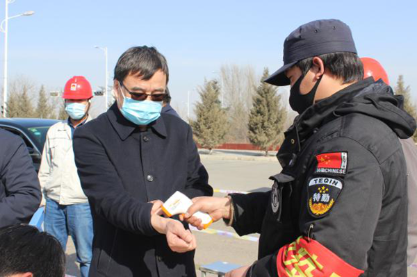 朱洪軍一行在疫情防控檢測點按檢測程序測量體溫、登記信息,詳細查看了疫情防控登記臺賬并到工作現場檢查。經過細致檢查,對固原片區疫情防控工作給予了充分肯定。