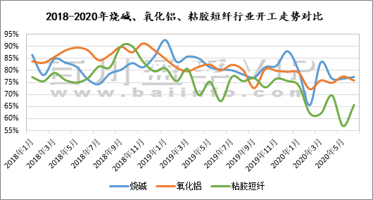 從開工率方面,根據百川統計數據,2020年1-6月粘膠短纖平均開工率為65.1%,同比2019年1-6月平均開工率74.9%下滑13.1%;2020年1-6月氧化鋁平均開工率為75.9%,同比2019年1-6月平均開工率81.61%下滑7%。