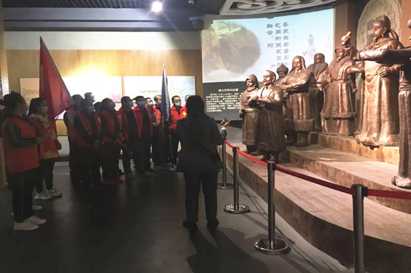 黨旗與金昱元旗幟高高飄揚(yáng),黨員們身著紅色志愿者馬夾,手持五星紅旗,排著整齊的隊(duì)伍接受防疫檢查。展覽廳里,大家認(rèn)真聆聽古靈州歷史文化、吳忠革命史講解,或駐足細(xì)心觀賞歷史文物,或三五一群交流體會(huì)。大家悉心領(lǐng)略地方文化史,回顧紅色歷史,緬懷革命先烈,汲取前行力量。恰逢明年是中國共產(chǎn)黨建黨100周年和金昱元集團(tuán)建企30周年,全體黨員重溫了入黨誓詞,黨支部書記向全體黨員分享了30年來企業(yè)沐浴改革開放春風(fēng),在建設(shè)、改革、發(fā)展過程中的故事和取得的成就。