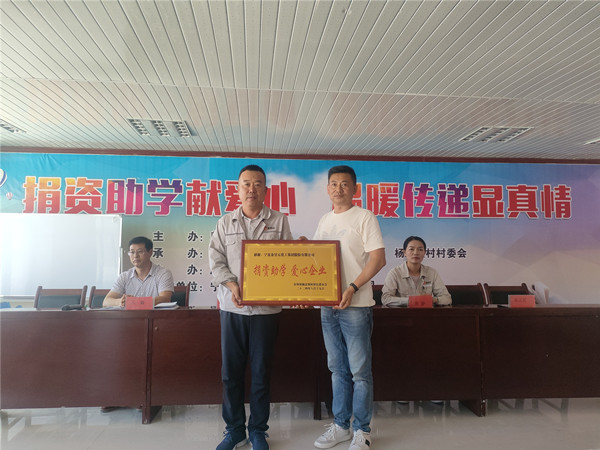 最后,彭堡鎮楊忠堡村黨支部書記童正武為寧夏金昱元化工集團股份有限公司頒授了“捐資助學 愛心企業”榮譽牌。